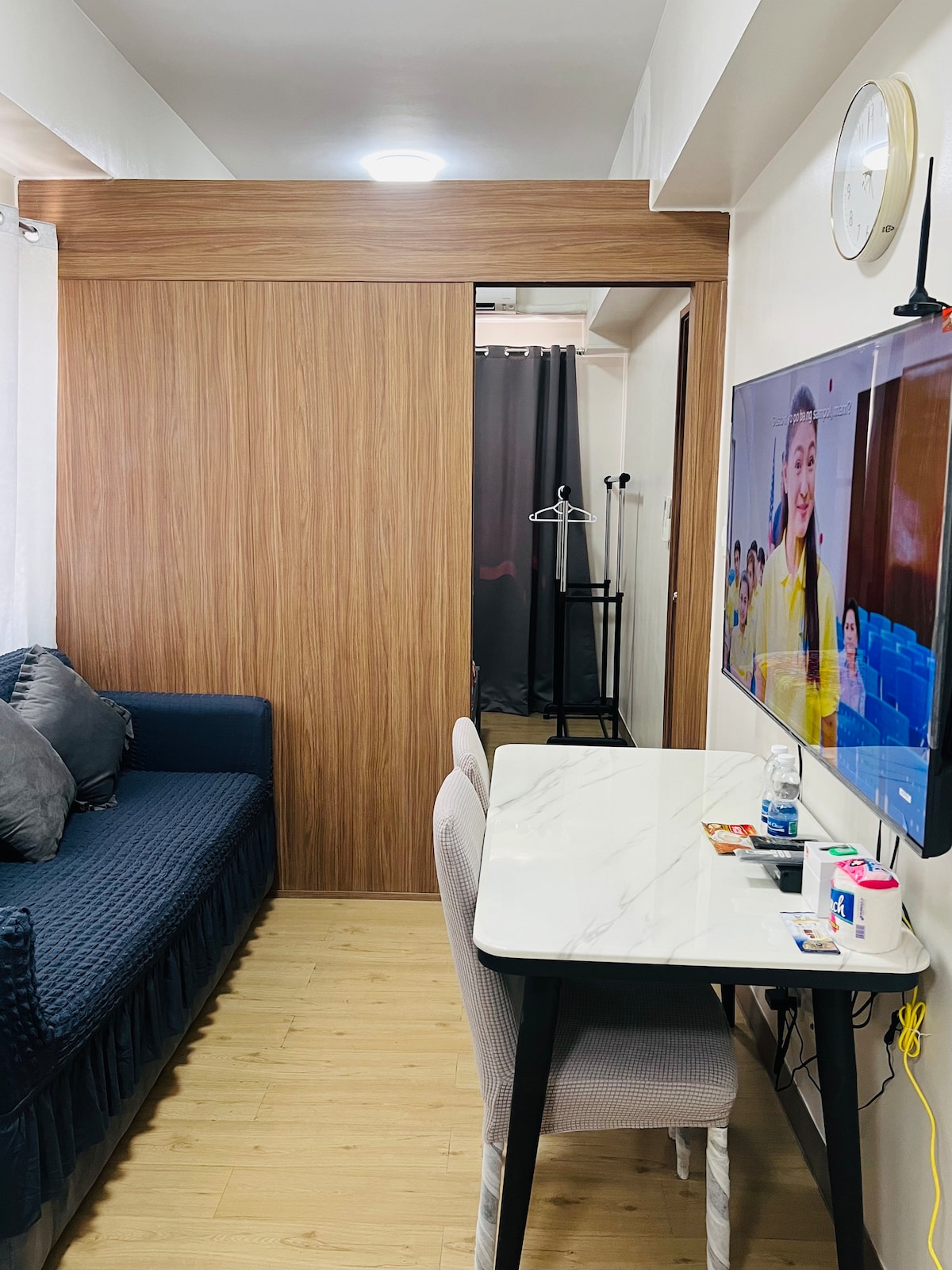 Can accommodate maximum of 4 guests including infants ( with 1 bedroom, 2 beds and 1 bathroom). The place is located about 20 mins away from NAIA International Airport and beside SM Bicutan Mall. There is a wave pool that is charged by azure management at 250 pesos per head. There is a 24 hours convenient store open within the premises. This well kept unit is a perfect getaway for friends and loved ones. Wave pool is closed every Tuesday for maintenance with effect from July 1, 2025