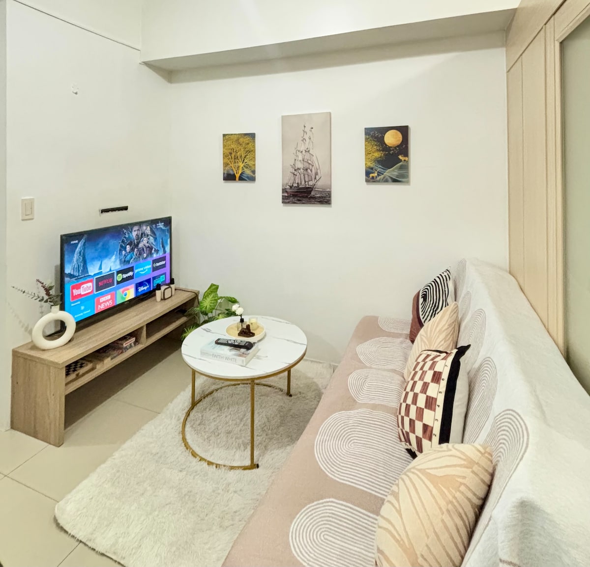 Ciesz się krótkim lub długim pobytem w moim luksusowym lofcie z 1 sypialnią i balkonem, rozpieszczając się podczas wakacji lub wolnego czasu w wygodnym łóżku typu king size lub na przytulnej skórzanej sofie, grając w gry na naszej konsoli Nintendo Switch, oglądając na przykład filmy na Netflixie na 55-calowym telewizorze lub pracując efektywnie przy użyciu szybkiego Wi-Fi, drukarki, skanera. Luksusowo umeblowane i wyposażone. Jednostka znajduje się w SMDC AIR RESIDENCES w Makati.