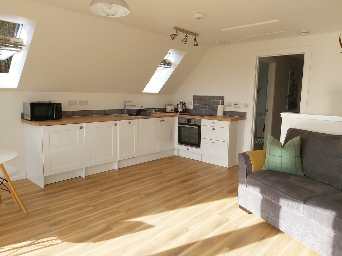 Drumsmittal Croft is an open plan luxury modern apartment on the Black Isle set within a working croft in a beautiful rural location with stunning panoramic views over the Beauly Firth and Inverness. The apartment is on the doorstep of the North Coast 500 (NC500) and within a 10 minute drive to the centre of Inverness, a perfect location for those looking to explore the Highlands and Islands. You can also find us on Instagram - drumsmittal_croft