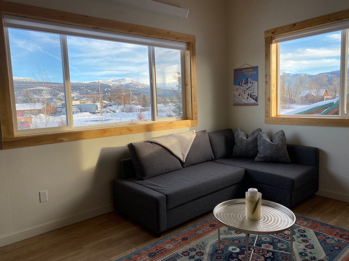 Start your Big Sky Adventure in this newer, 1 bedroom, 1 bath guest house. It is cozy and clean with modern amenities such as radiant floor heat, Wifi, satellite smart tv, USB plugs to charge personal electronic devices, private hot tub, cozy wood burning stove, free off street parking and its own private entrance. It is nestled in the Meadow Village across from the golf course's 16th green. The home is conveniently located within walking distance to Town Center restaurants, bars and shopping.
