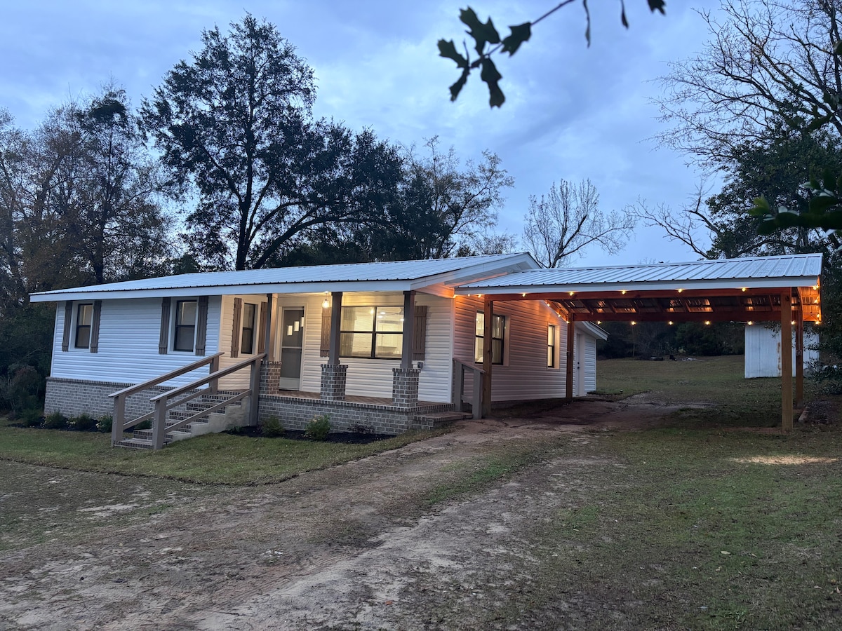 Położony centralnie na skrzyżowaniu z Florydą, Alabamą i Georgią. W pobliżu Dothan, Tallahassee, plaże Florydy, Donalsonville, Bainbridge. W pobliżu możliwości rekreacyjne: jaskinie, Merritt 's Mill Pond, rzeka Chipola, rzeka Chattahoochee, jezioro Seminole, 3 Rivers State Park. Świetne lokalne restauracje i browary. Bezpłatne Wi-Fi, telewizory Smart TV w każdej sypialni i salonie. Dobrze wyposażona kuchnia: frytkownica powietrzna/toster, Instapot, grill George Foreman, M/W. Pralnia ma pralkę i suszarkę. Parking dla łodzi.