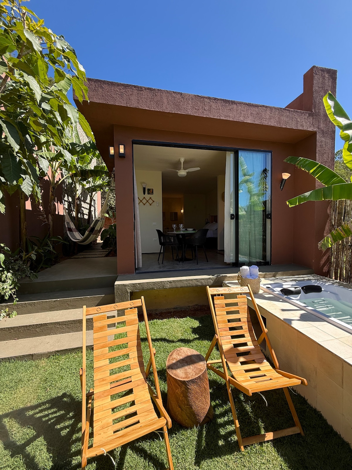 Zrelaksuj się w tym cichym, stylowym miejscu. Gospodarz Chalés Casa Campina To ekskluzywny ośrodek wypoczynkowy położony w Serra da Meruoca w stanie Ceará w Brazylii. Połączenie rustykalnego uroku i wyrafinowania zapewnia wciągające doświadczenie, które łączy dobre samopoczucie, niezależność kulinarną i bezpośredni kontakt z żywiołową naturą gór.