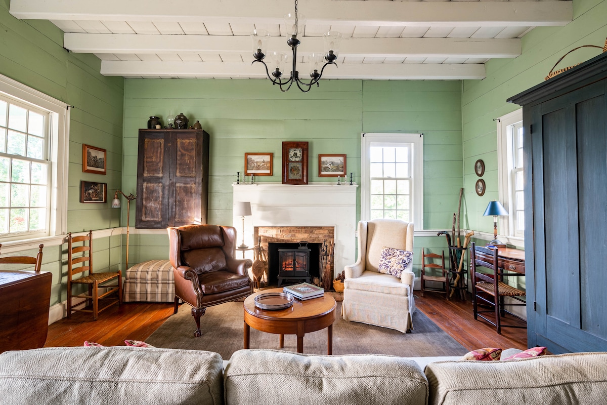 The 1811 Cottage is as unique as the 120 acre farm it sits on with it's wide heart pine plank walls, ceilings, floors, and the duel fireplaces. This historic settler's home features a living room, master bedroom on the main floor, and a huge sleeping loft, making it comfortable and cozy for one to six guests. Modern additions include a large bathroom with claw foot tub and shower and a nicely equipped, yet tiny kitchenette. The front porch is a great spot for that early morning cup of coffee!