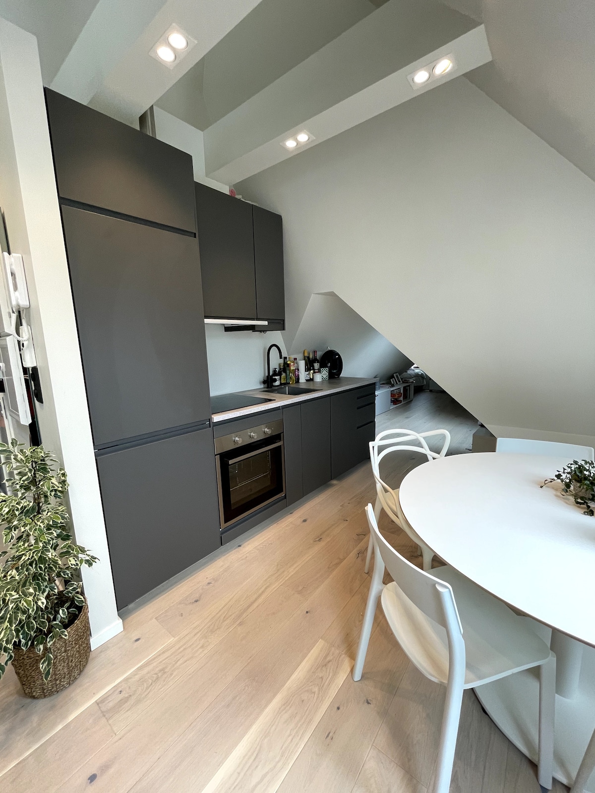 Przytulny apartament na poddaszu z ładnym panoramicznym widokiem na Bergen. Znajduje się w odległości krótkiego spaceru od centrum miasta (15 min.) i tylko 5 min od najbliższego przystanku tramwajowego. Otwarta nowoczesna kawalerka z inteligentnym układem, w tym aneks kuchenny i łazienka. Oferujemy elastyczne zameldowanie i wymeldowanie, ale w dni robocze pracujemy w ciągu dnia, więc preferujemy zameldowanie po 15:30. Wcześniejsze zameldowanie może być możliwe po wcześniejszym uzgodnieniu. Daj nam znać, jak wygląda Twój harmonogram. Dziękujemy.