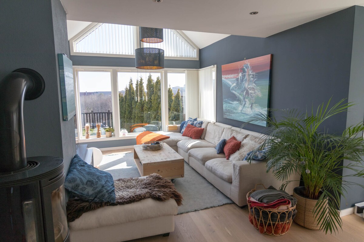 4 soverom, 2 bad og 2 stuer hvorav èn spisestue. Det ene soverommet i 2 etasje er et familierom med dobbeltseng og en sovesofa. To soverom har familie-køyer med 180cm senger nede og 90cm oppe. Det siste soverommet har vanlig dobbelseng. Spisestue med plass til 12 personer. Oppvarming med varmekabler i gulv, varmepumpe og vedovn. Trådløst nett (fiber). AppleTV tilgjengelig.