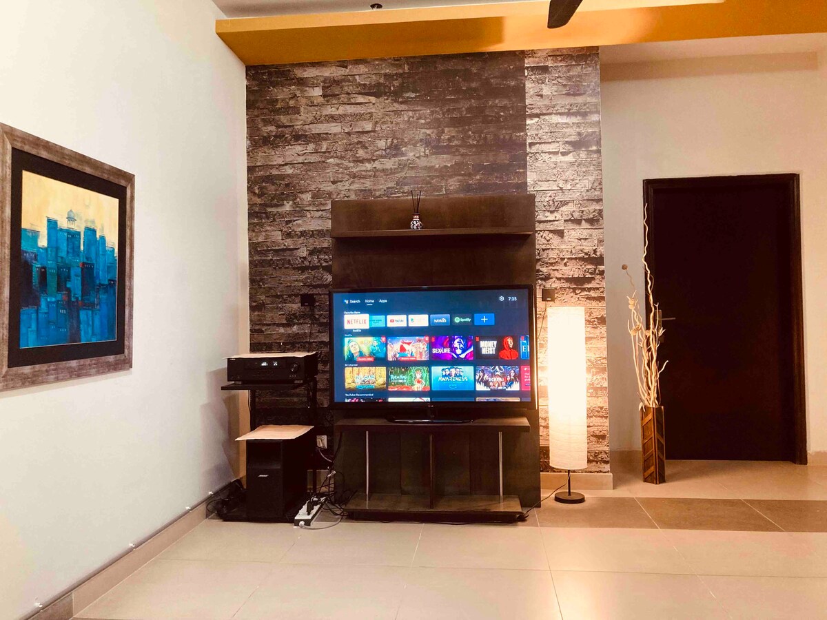 Experience luxury living in the heart of Islamabad’s posh area. Wake up to elegantly styled interiors, private patio, and enjoy high-speed 50 Mbps Wi-Fi, workstation, and 180+ HD channels, and equipped with 24/7 dehumidifier. You will right by the jogging track and just minutes to 50+ eateries and 30+ retail brands. Self-check-in, optional meals and airport transfers add a touch of ease. Traveling with little ones? A cozy toddler cot is ready for you. Your perfect luxury retreat awaits