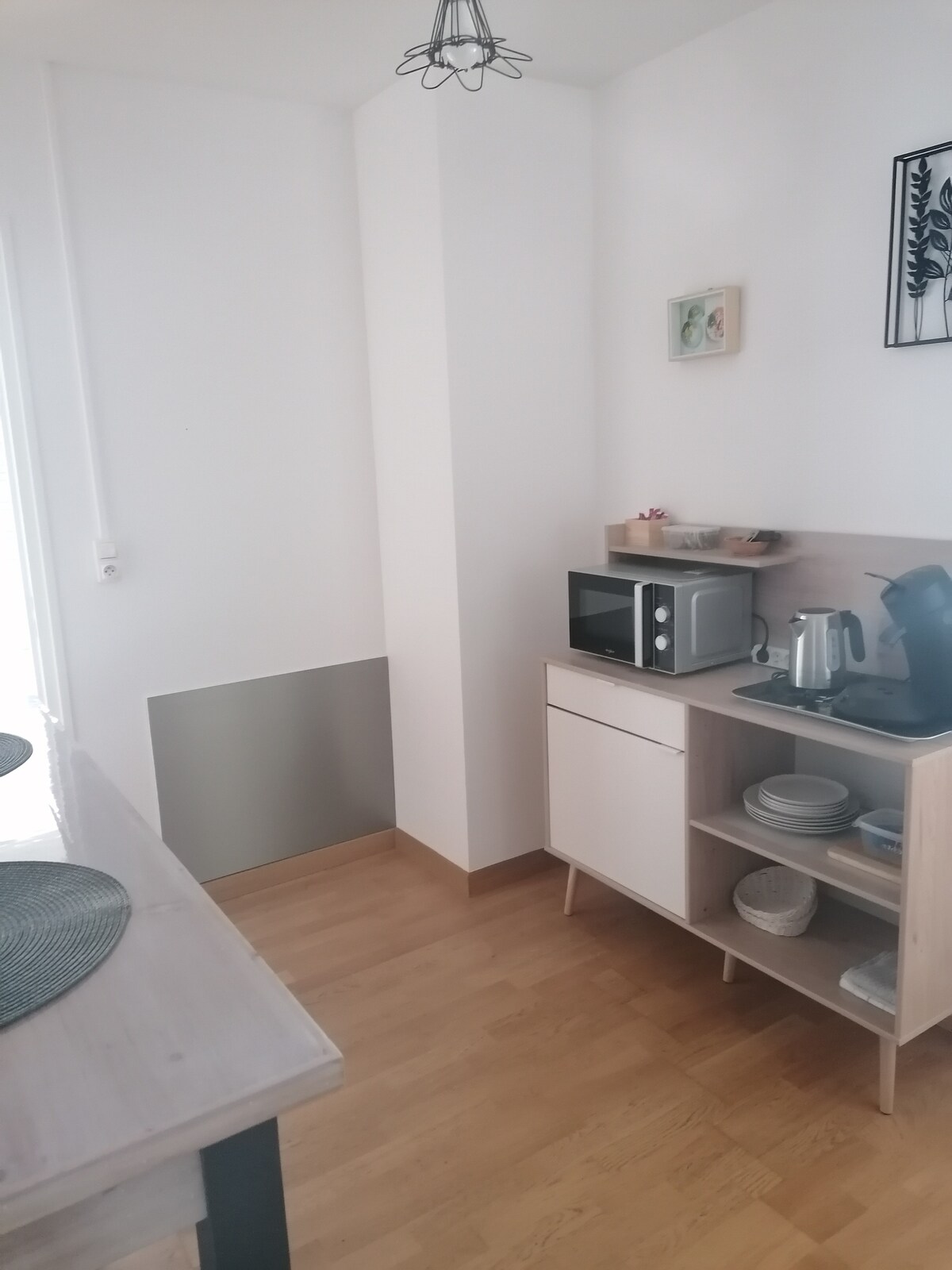 Zapraszamy do skorzystania z tego małego, cichego i odnowionego apartamentu położonego w pobliżu Opactwa Saint Pierre de Solesmes. Mieszkanie położone na piętrze, dostępne po zewnętrznych schodach, wyposażone w aneks kuchenny z lodówką i kuchenką elektryczną, piekarnikiem i kuchenką mikrofalową, ekspresem do kawy, czajnikiem, łazienkę z podwójną umywalką i prysznicem, salon i sypialnię z łóżkiem dla 2 osób, biurko, szafki.