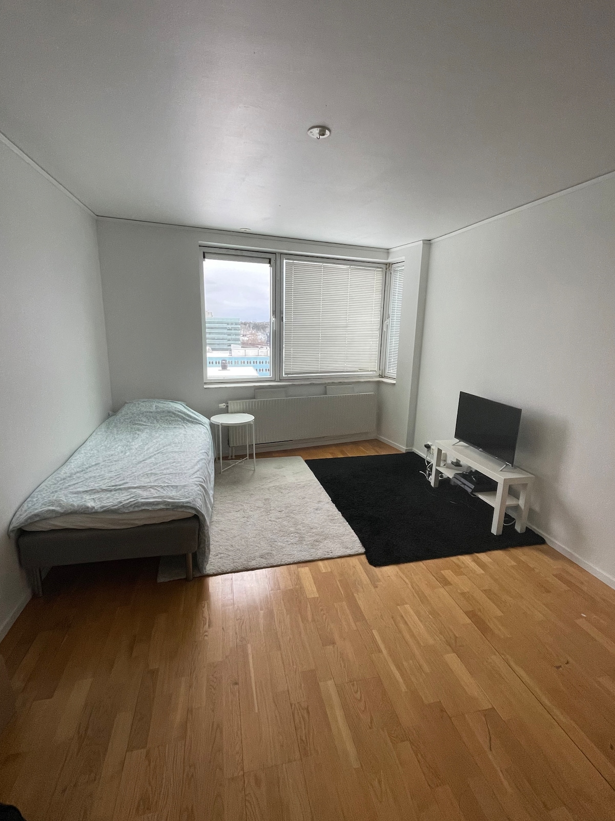 Jednopokojowe mieszkanie z widokiem na centrum handlowe w Kista