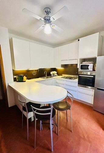 Recently renovated apartment, consisting of a living room with a sofa bed for 2, an open kitchen equipped with modern appliances, a large double bedroom with wardrobe, a windowed bathroom with shower and brand new sanitary ware. In the internal courtyard there is a parking space for exclusive use. The entire apartment is equipped with air conditioning and Fast Wifi. Perfect for couples, families or groups of friends, the apartment is equipped with a double sofa bed.