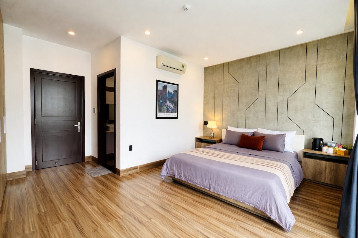 🌿 Boutique Room with Balcony | Near Beach & Dragon Bridge Stay in the city center, just minutes from My Khe Beach and Dragon Bridge, in a cozy boutique-style room designed for comfort, light, and everyday convenience. This room is spacious, warm, and thoughtfully arranged, perfect for guests looking for a calm and comfortable stay without in-room spa features. Large windows and a private balcony bring in natural light, creating a relaxing atmosphere throughout the day.