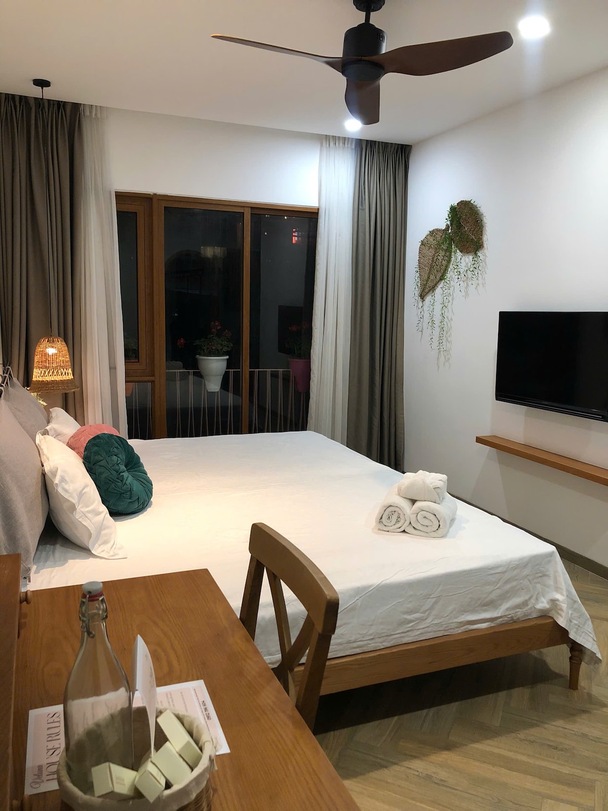 Witamy w apartamentowcu Boutique, zaledwie 7 minut jazdy motocyklem od plaży My Khe. Każdy pokój jest wyposażony w nowoczesny, minimalistyczny wystrój z pełnym wyposażeniem, które zapewnia komfortowe uczucie jak w domu: przestronne podwójne łóżko, prywatna toaleta w pokoju, klimatyzacja, telewizor Smart TV i szybkie Wi-Fi. Nasz apartamentowiec jest odpowiedni dla: – Podróżny do ośrodka wypoczynkowego – Grupa przyjaciół wybierających się nad morze – Osoby podróżujące służbowo potrzebują centralnej lokalizacji