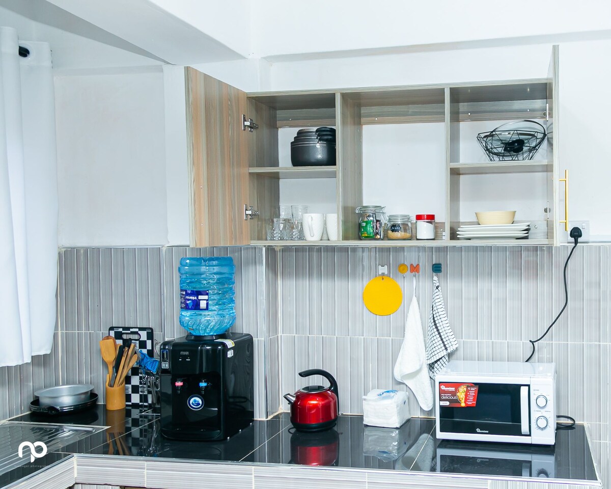 Witamy w Lakeview Luxe Haven, Twoim spokojnym azylu w samym sercu Milimani w Kisumu. Ten pięknie urządzony apartament z jedną sypialnią łączy w sobie nowoczesny komfort, przytulny urok i romantyczną elegancję – idealny dla par, osób podróżujących w pojedynkę lub gości biznesowych poszukujących spokoju i stylu. Wkrocz do jasnej przestrzeni mieszkalnej z wygodną 3-osobową sofą, telewizorem Smart TV i miękką wykładziną, na której możesz się zrelaksować. Zrelaksuj się w przytulnej sypialni i na balkonie. Mam nadzieję, że Ci się spodoba