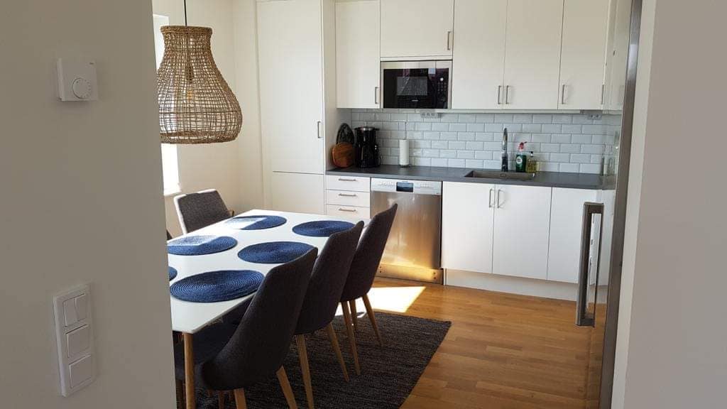 Czy możesz to przetłumaczyć na język szwedzki? Nowoczesny apartament położony na Smögen ze wszystkimi niezbędnymi udogodnieniami, a także fantastycznym widokiem i bliskim dostępem do kąpieli. 2 osoby będą tu wygodnie mieszkać, ale maksymalnie 4 osoby mogą się tu zatrzymać, korzystając z mojej sofy. Uwaga: pod pewnymi warunkami akceptuję tylko więcej niż 2 gości, skontaktuj się ze mną, aby uzyskać więcej informacji.
