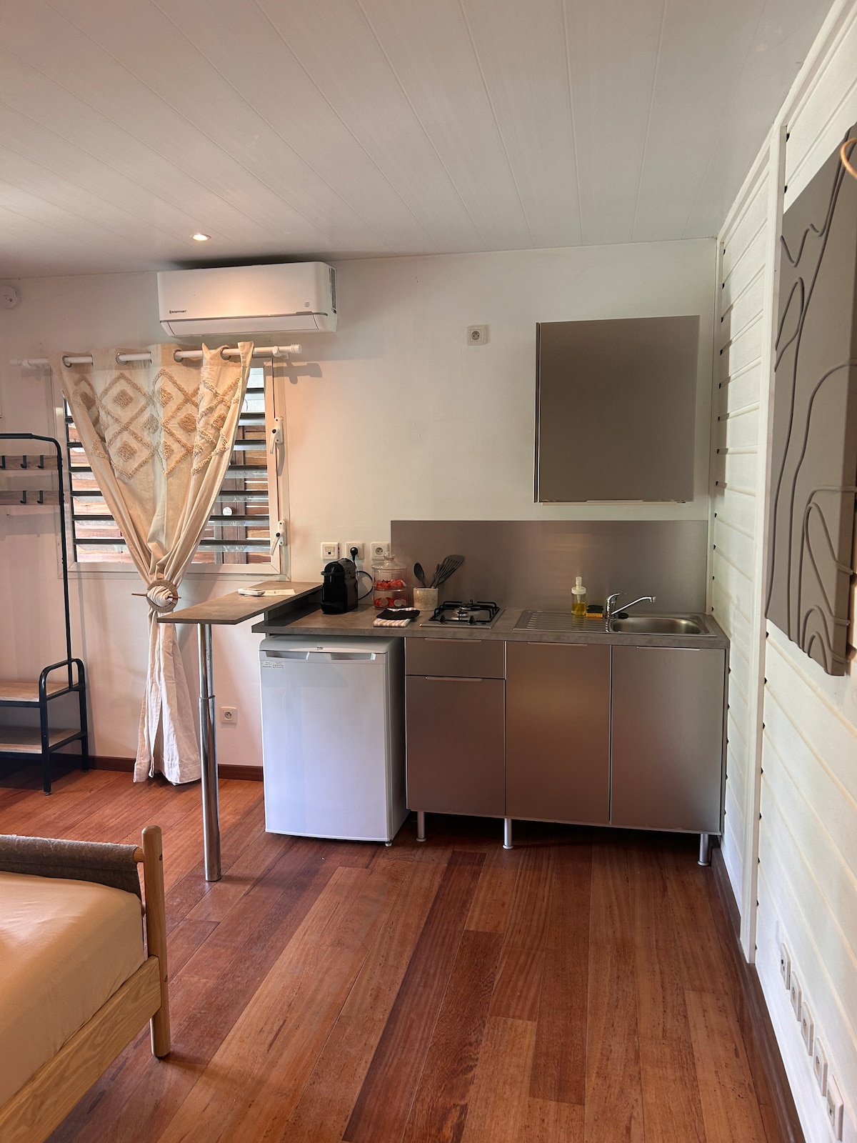Les gîtes “La siesta” vous proposent Le Studio. Un espace de tranquillité et de bien être niché au cœur de la nature. Situé à 2 pas des activités touristiques de Montsinery et de Macouria, vous bénéficierez d’une position idéale pour un week end relaxant. Un jacuzzi privatif vous permettra de prendre des bains chauds ou froids sur une terrasse donnant sur un jardin calme et sans vis à vis. Il est possible de vous mettre à disposition, un lit bébé, merci de nous en faire la demande.