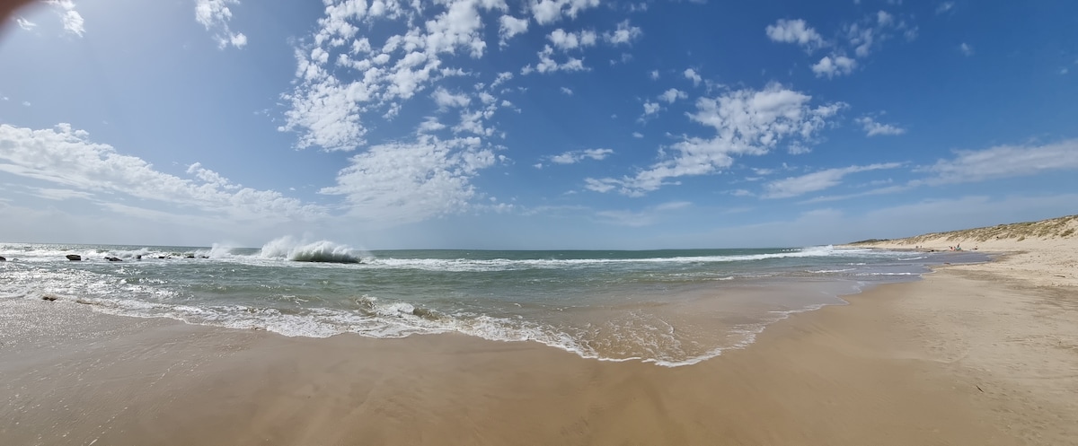 Dom na plaży z bezpośrednim dostępem do oceanu (dzielnica Arros) bardzo popularny ze względu na spokój i bliskość natury i oceanu, z dostępem do centrum miasta (3 minuty). Salon, wyposażona kuchnia, 2 sypialnie, 3 łóżka. Ogród o powierzchni 800 m2 z 2 tarasami. Na dole ogrodu wspinaj się po wydmie małą ścieżką do oceanu (baseny z wodą morską na plaży). Pościel, ręczniki kąpielowe i ręczniki plażowe są dostępne bezpłatnie. Dostępna przenośna lampa z możliwością ładowania i głośnik Bluetooth.