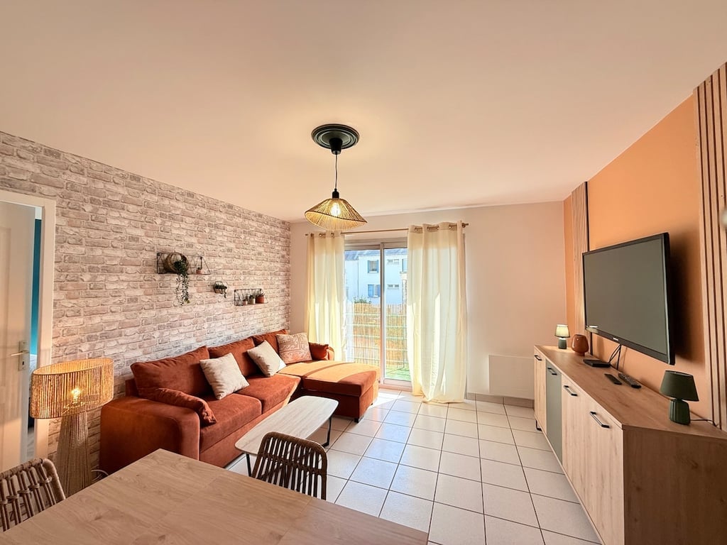 Uroczy apartament: pokój dzienny z kuchnią, sypialnia z łóżkiem 160 cm (pościel w komplecie), kabina prysznicowa (ręczniki w komplecie), meble ogrodowe, grill, dwa rowery. Bezpieczny parking oraz garaż na samochód, rowery, motocykle (road trip). Plaża oddalona jest o 200 metrów, bary, restauracje, sklepy, kino, muzea (pokaz Escal Atlantique paquebot). Zwiedzanie stoczni Chantiers de l'Atlantique, Airbus. La Baule/Pornichet w odległości 15 km, słone bagna Guérande. La Brière znajduje się w odległości 10 km.