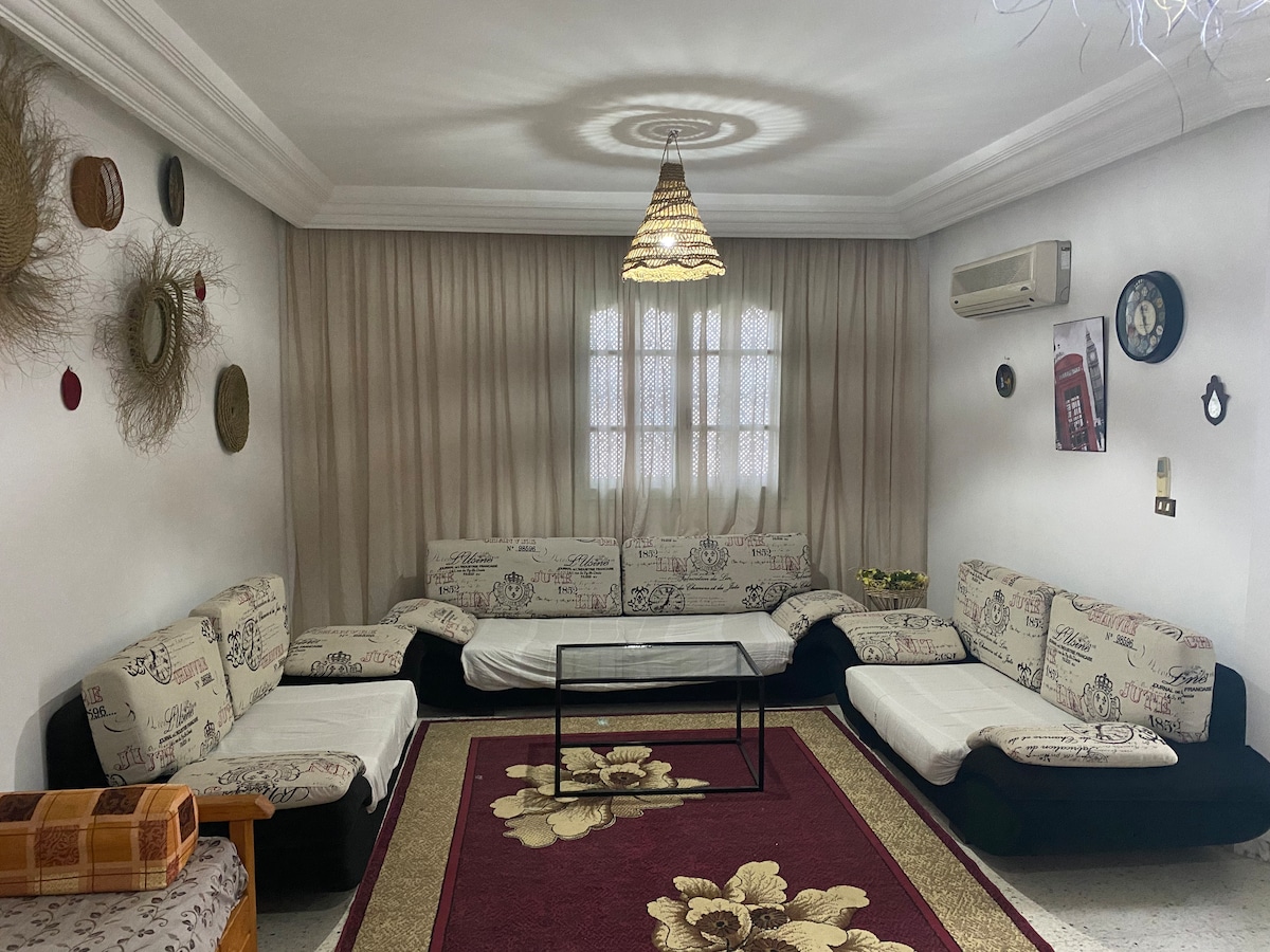 Logement complet de standing 180M2 en Etg 2 avec 3 chambres. Quartier résidentiel parfaitement équipé pour famille ou affaires. Idéalement situé prêt des voies rapides qui mènent au centre de Sousse ou à la plage et sur l'axe de Hammamet ou Monastir. 2 agences de location de voitures à 50 Mètres pour louer votre véhicule au meilleur prix. Accès gratuit la Sousse à la salle de sport Body Line Sousse durant tout votre séjour situé à 800 mètres du logement (Musculation, Cardio, Taekwendo)