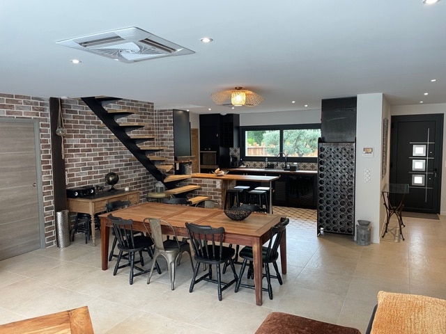 3 km od centrum Vieux-Boucau, położonego w samym sercu powietrza, w otoczeniu sosen i stuletnich dębów korkowych, ten dom jest prawdziwą oazą spokoju, w pobliżu plaż oceanu. Ciesz się dużym, zaprojektowanym przez architektów krajobrazu parkiem z podgrzewanym basenem, dużą przestrzenią (salon ma 60 m2) i niesamowitym światłem, które przenika przez drzewa. Idealny dla rodzin lub grup przyjaciół, dom może pomieścić do 15 osób, podzielony na 5 sypialni.