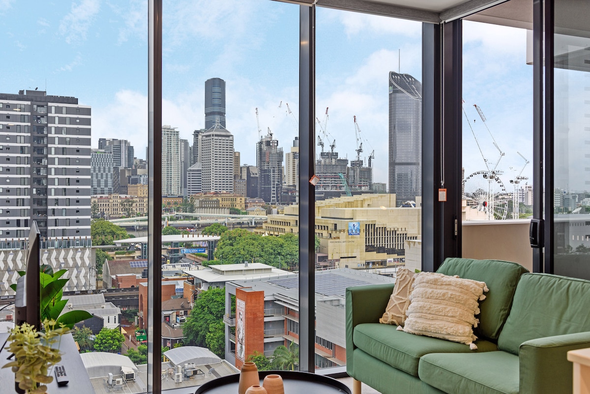 Central South Bank Apt w/ City Views, Study & Park