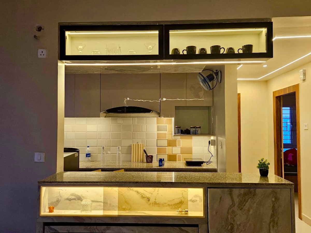 Ebb Jest to zachwycająco jasna, przewiewna przestrzeń z relaksującą atmosferą, apartament z dwiema sypialniami i tarasem Położony centralnie i łatwy dostęp do wszystkich restauracji, centrów handlowych, szpitali i miejsc turystycznych miasta Możesz wybrać ten pobyt, niezależnie od tego, czy jesteś w mieście w podróży służbowej, rodzinnej, wakacyjnej, medycznej itp. Znajduje się na pierwszym piętrze z windą i całodobową ochroną oraz jednym parkingiem Wnętrza w stylu zen i minimalistyczne zapewniają błogie uczucie :)