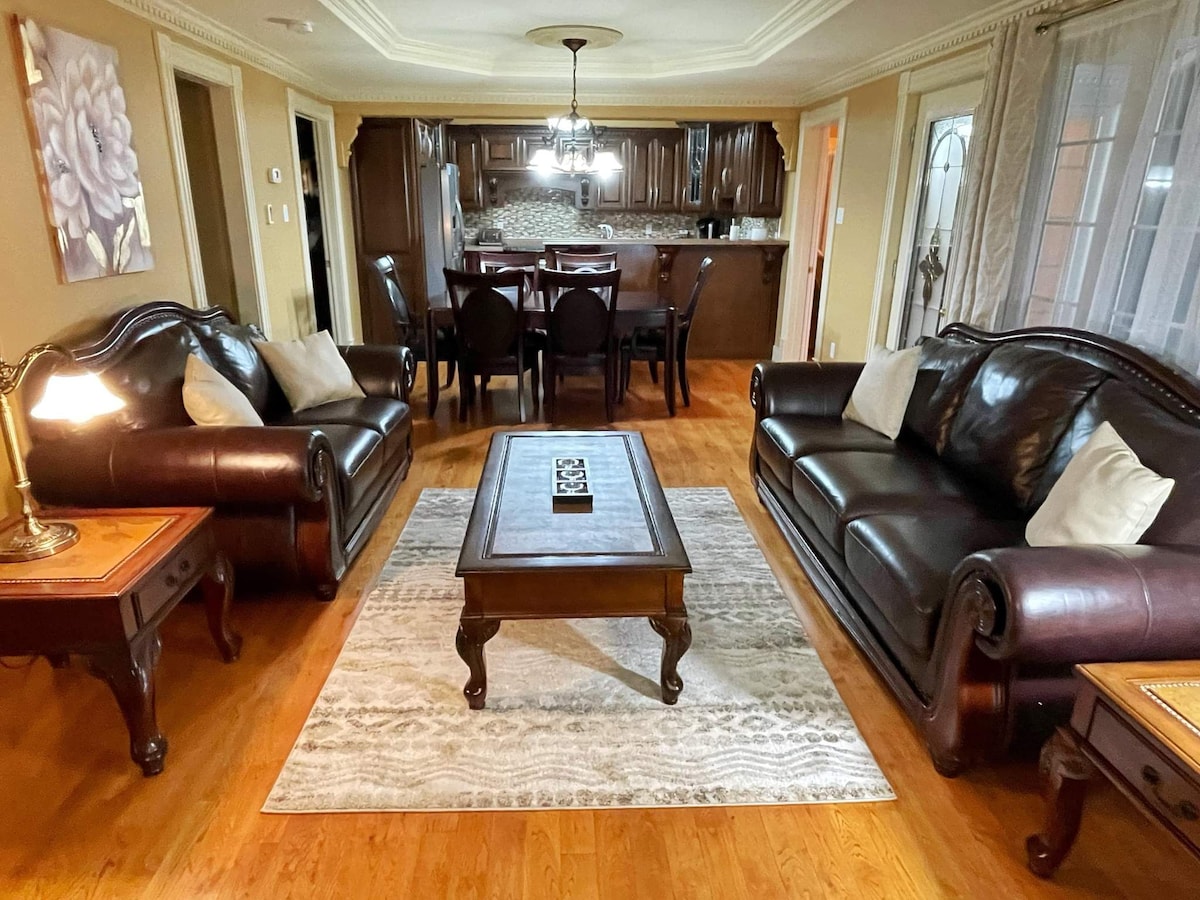 Witamy w bardzo dużej nieruchomości na świeżym powietrzu, przed wejściem do tego pięknie odnowionego i przestronnego, starszego 2-piętrowego domu! Wejdź przez duże, otwarte wejście. Na parterze znajduje się kuchnia ze wszystkimi udogodnieniami. Jadalnia, wygodny salon z 50-calowym telewizorem. Sypialnia nr 1 z łóżkiem typu queen. Duża główna łazienka z pralką. Na drugim piętrze, sypialnia nr 2 z podwójnym łóżkiem, toaleta i znacznie większa sypialnia nr 3, również z łóżkiem typu queen!