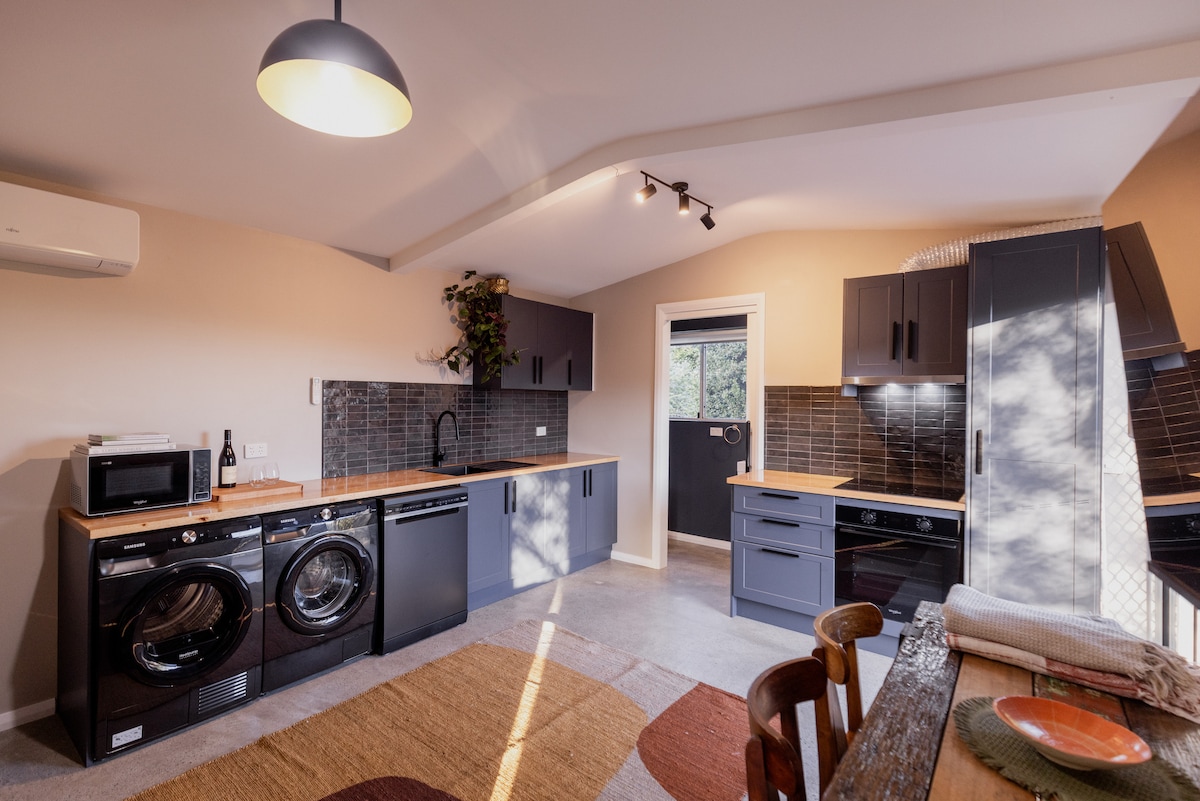 The perfect base for a visit to Hobart, situated amongst the cafes and shops of picturesque South Hobart, and steps to the glorious Rivulet Track. A 15-minute walk to town (25 mins to Salamanca), or 5-minute drive. This is a beautiful, newly renovated private flat with plenty to inspire your inner scientist. Enjoy the full kitchen (complete with naturally antimicrobial copper bench tops), washer/dryer, rain shower, and sliding doors opening onto your own sitting area, and access to the backyard.