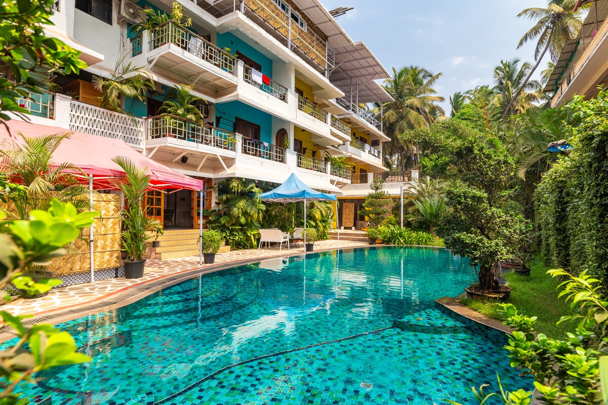 Florin Stays is your sweet spot in Vagator — Goa’s party district. Walk to all-night bars, grub hubs & beaches (2–15 mins). No cab stress, no cop mess. Remote workers, solo travellers, couples — we’ve got you covered with comfy rooms, fast WiFi, private balconies, scooter deliveries, refreshing showers, filtered water & cozy work nooks. Just comfy rooms, good vibes & the perfect base to live your best Goa life.