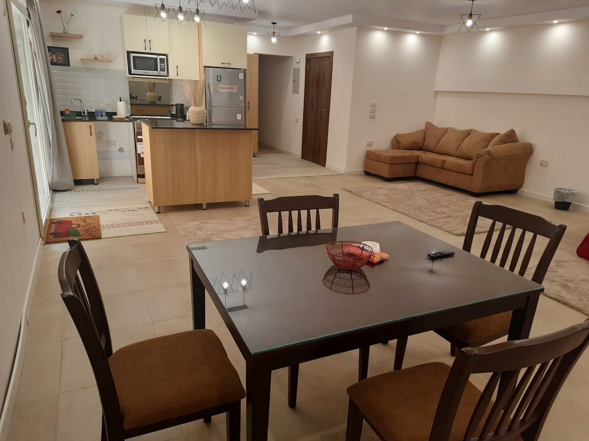 Witamy w naszym ultranowoczesnym miejscu Airbnb w centrum Nowego Kairu! To stylowe mieszkanie posiada dwie sypialnie z trzema łóżkami, które mogą pomieścić maksymalnie czworo gości. Do dyspozycji gości jest elegancka łazienka, w pełni wyposażona otwarta kuchnia oraz przestronny salon i jadalnia. Wyjdź na balkon, aby podziwiać spokojne widoki na okolicę. Położony w pobliżu centrów handlowych Garden 8 i Water Way, z łatwym dostępem do Al-Rehab City. Poczuj luksus i wygodę w Nowym Kairze! Zarezerwuj pobyt już teraz, aby przeżyć niezapomniane chwile w tym tętniącym życiem mieście.