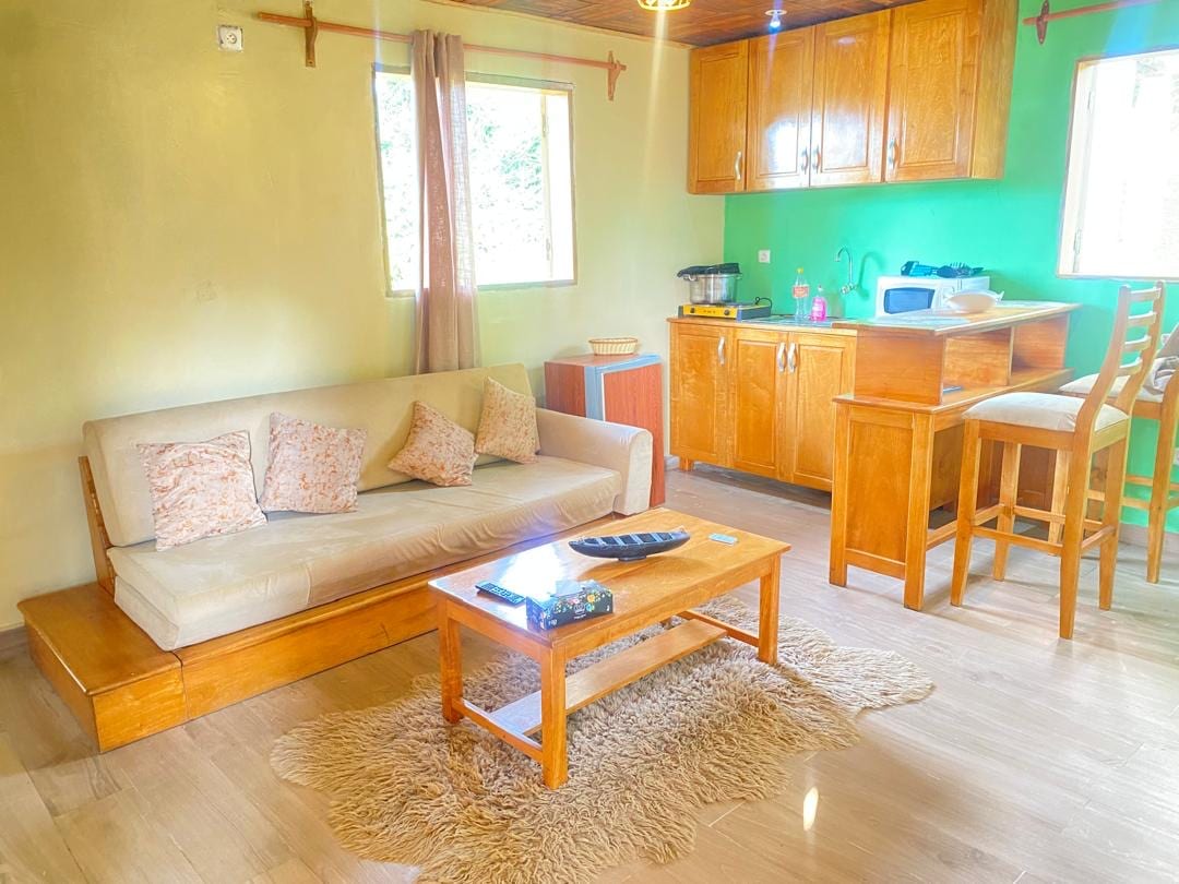 Bienvenue chez RKS - Résidence Kribi Soleil, Appartement "Ananas": un refuge paisible au rez-de-chaussée de la Résidence Kribi Soleil. Cet appartement offre une chambre confortable, un salon avec canapé-lit, une cuisine moderne et une terrasse privée. Profitez de la tranquillité, de la proximité des chutes de la Lobé et de la plage de Kribi. Wi-Fi gratuit, climatisation et parking inclus. Réservez dès maintenant pour une escapade mémorable !