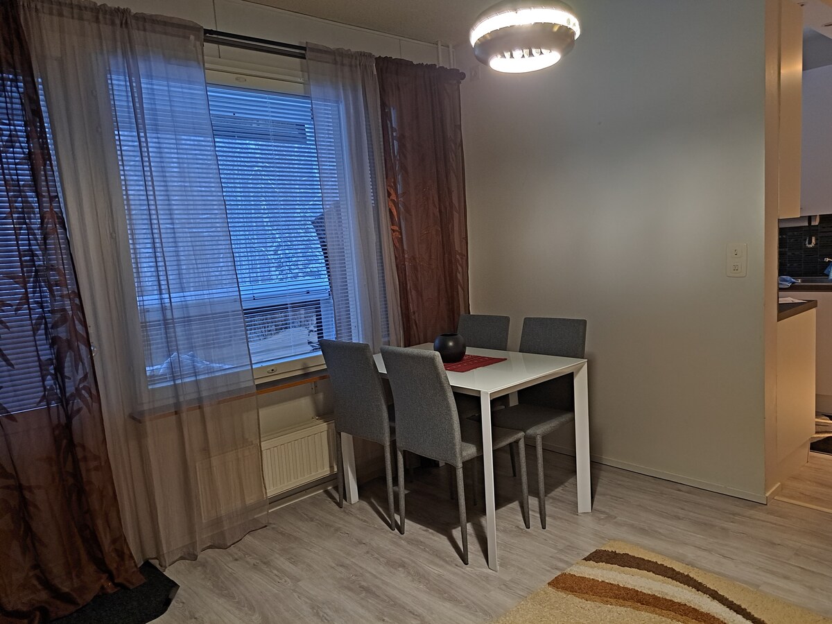 VAIN AIKUISILLE ! Hyvin varusteltu kaksio mm. viilennysilmapumppu🌞minkä ansiosta oleskelu mukavaa helteelläkin🥵 myös wifi käyttö ja liinavaatteet sisältyy majoituksen hintaan. Lisämukavuutta antaa kylpyhuoneen lattialämmitys, sekä lasitettu parveke,josta puisto-/ärvinäkymä.Autopaikka.Nauti mukavasta majoittumiskokemuksesta tässä rauhallisessa ympäristössä..Harrastus mahdollisuudet ihan äärellä. Rauhallinen siainti.Sairaala 3 min kävelymatka ja keskustan kaupat aivan likellä.EI LEMMIKKEJÄ !