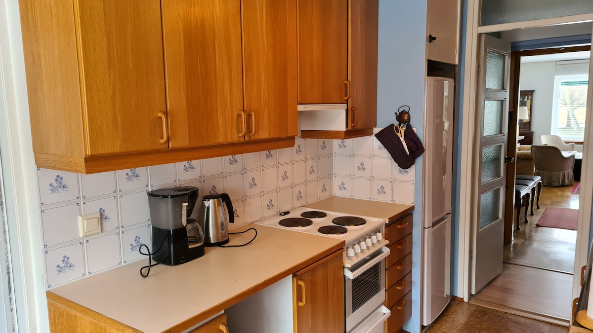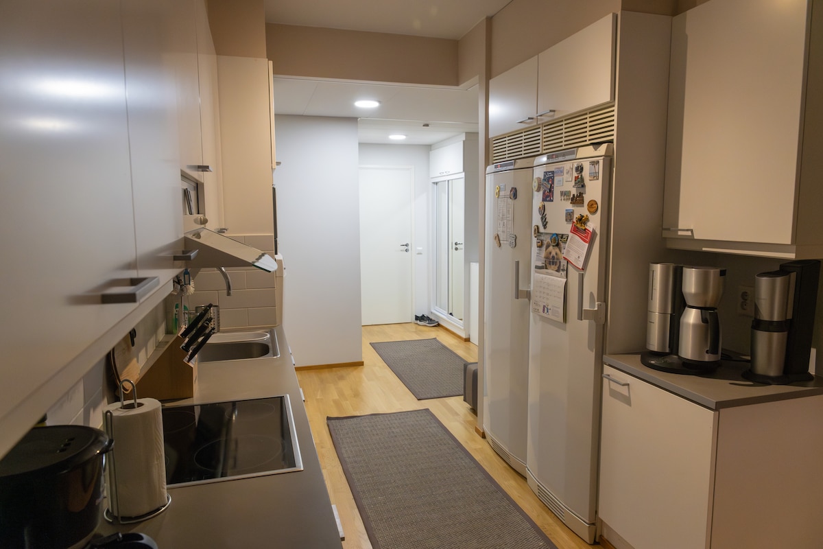 Przytulne klimatyzowane mieszkanie o powierzchni 74,5 m2 z sauną w Tammela Stadium. Za pomocą windy można dostać się na parking, do supermarketu i do restauracji. W apartamencie znajdują się wysokiej jakości materiały i wyposażenie oraz 65-calowy telewizor z Netflixem, a także duży balkon (20 m²) z widokiem na park. Na parkingu znajduje się 1 bezpłatne miejsce parkingowe, a przystanek komunikacji miejskiej jest tuż za rogiem. W pobliżu znajduje się również centrum miasta (1 km). To miejsce jest dobre na pobytów służbowych lub na relaksujący odpoczynek od codzienności.