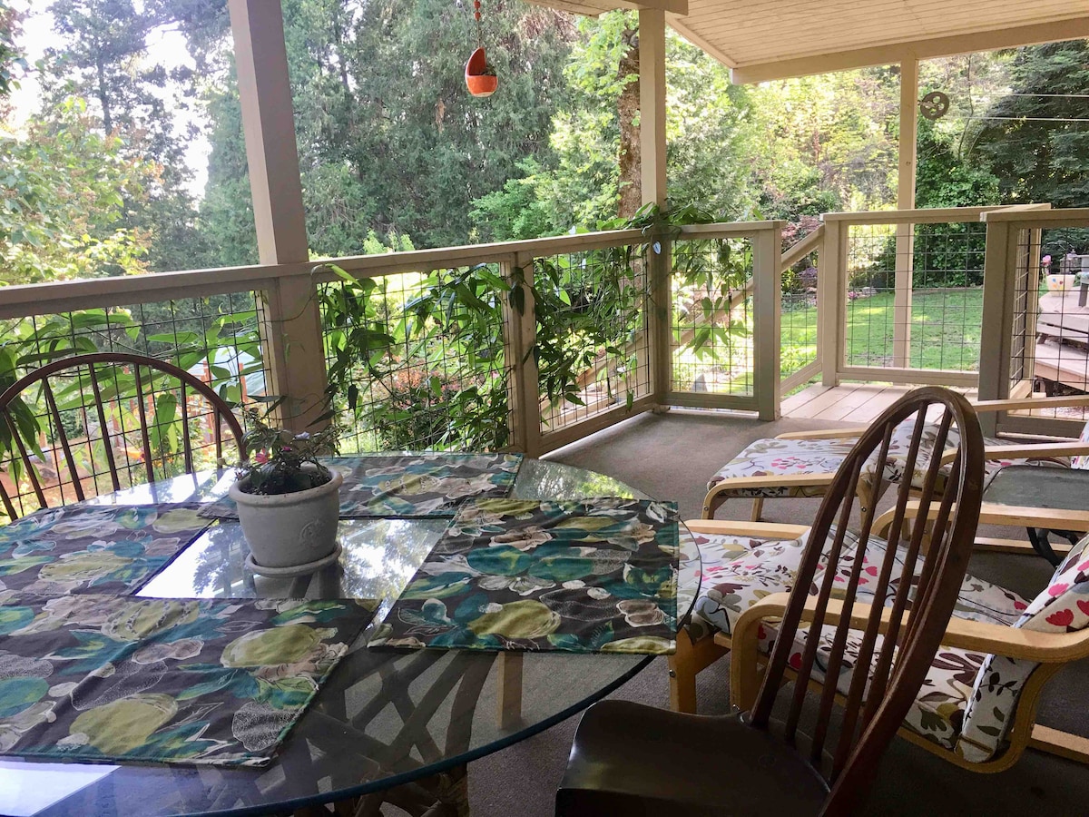 Ten kompaktowy, samodzielny apartament (z prywatnym wejściem) jest przymocowany do architektonicznie zaprojektowanego domu położonego na zalesionym zboczu wzgórza z widokiem na dużą łąkę. Jego odległa lokalizacja, 6 minut jazdy nad miastem Oregon House, jest idealnym miejscem na wypoczynek. Z całym apartamentem dla siebie może to być idealne miejsce na wypoczynek, romantyczny weekend lub cicha przestrzeń do pracy/nauki. Miejsce, w którym można się zrelaksować, medytować, czytać i czuć świat z dala od codziennych obaw. Brak zaakceptowanych rezerwacji na ten sam dzień.