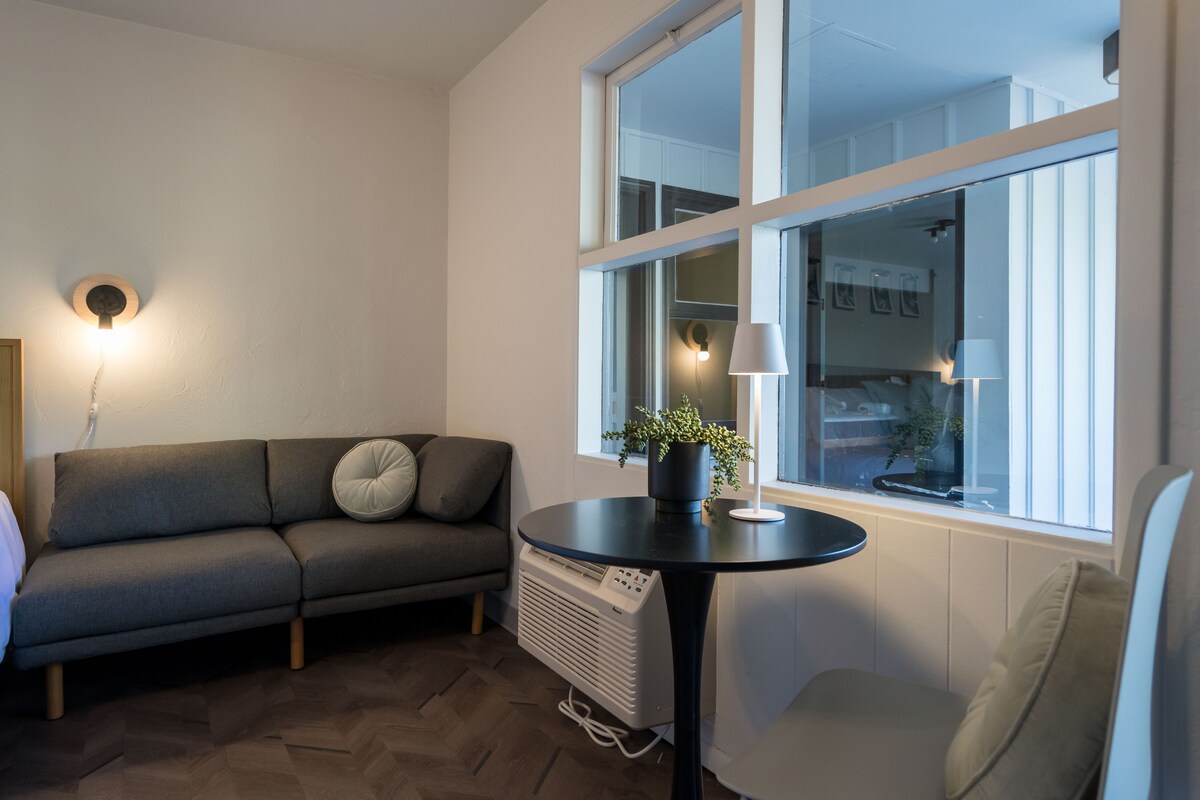Wyrusz w drogę po świeżych śladach w nowym Ski Inn. Jesteśmy 6-pokojowym hotelem butikowym położonym w samym sercu miasta Sisters! Pozwól, aby Ski Inn był Twoją bazą wypadową do wszystkich przygód w środkowym Oregonie. Ta oferta dotyczy pokoju 102, wyposażonego w prywatną windę zgodną z ADA, łóżko typu king, część wypoczynkową, łazienkę dostępną dla osób niepełnosprawnych oraz dostęp do wspólnego, panoramicznego patio. Nie zapomnij przejść na dół do Ski Inn Taphouse! Dostępność zgodnie z ADA