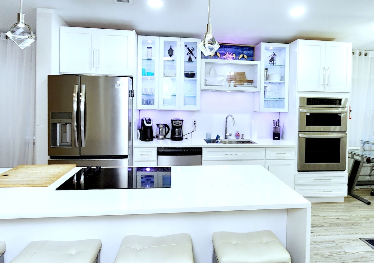 Zamieszkaj w The Funky Fish House! Twoja prywatna tropikalna oaza z 2 sypialniami/3 sypialniami/2 łazienkami oferuje podgrzewany basen ze słoną wodą, bąbelkową wannę z hydromasażem, prysznic na świeżym powietrzu i grill do grilla, które zapewniają niekończącą się zabawę, relaks i pełne słońca przygody. Zaledwie 5 mil od światowej sławy plaży Siesta Key i kilka kroków od Trader Joe's, ten elegancko odnowiony, w pełni zaopatrzony, stylowy ośrodek zaprasza rodziny lub pary do wypoczynku, rozrywki, korzystania ze słońca Florydy i cieszenia się najlepszymi wakacjami w Sarasocie w absolutnym komforcie i stylu!