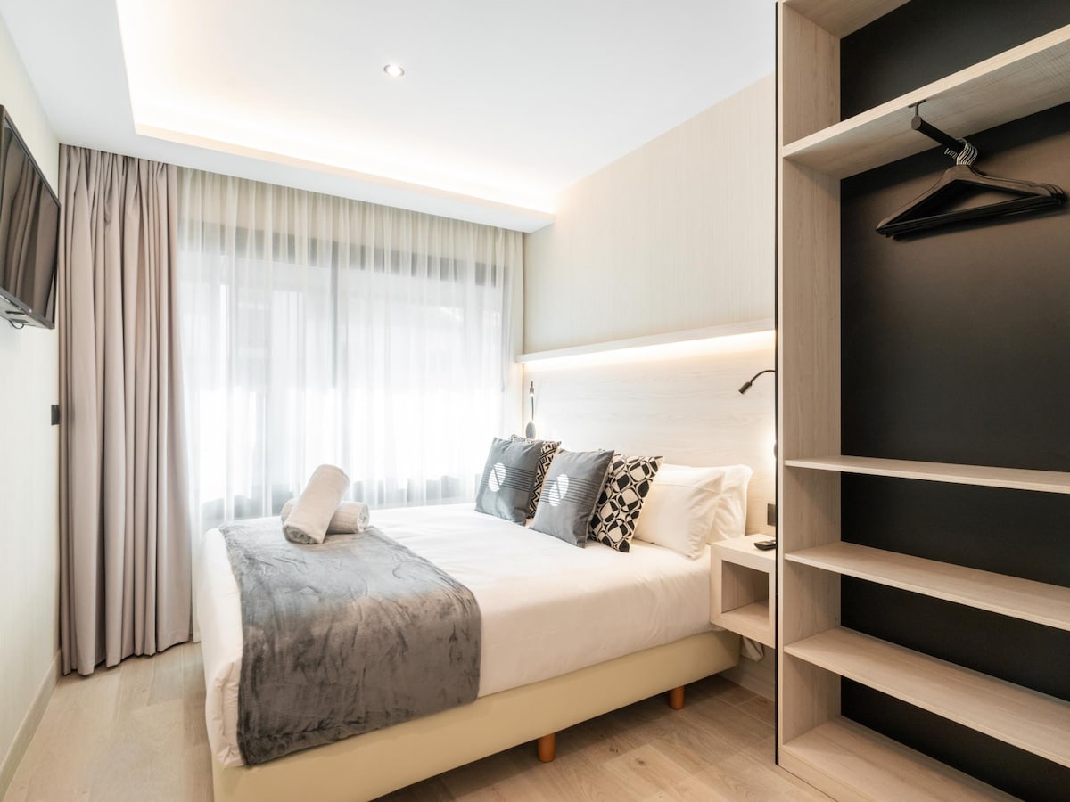 Wygląda na to, że miasto dzwoni do Ciebie z tego pokoju. Dzięki uprzywilejowanej lokalizacji poczujesz się, jakbyś miał Barcelonę w zasięgu ręki. Ten pokój z podwójnym łóżkiem jest przeznaczony dla dwóch osób. W pobliżu łóżka znajduje się telewizor w pokoju i małe biurko. A także jasną łazienkę z typowymi produktami do kąpieli. Ponadto możesz przejść do kącika z przekąskami w salonie. Tam możesz zaopatrzyć się w kawę lub poczytać książkę i zrelaksować się na sofach.
