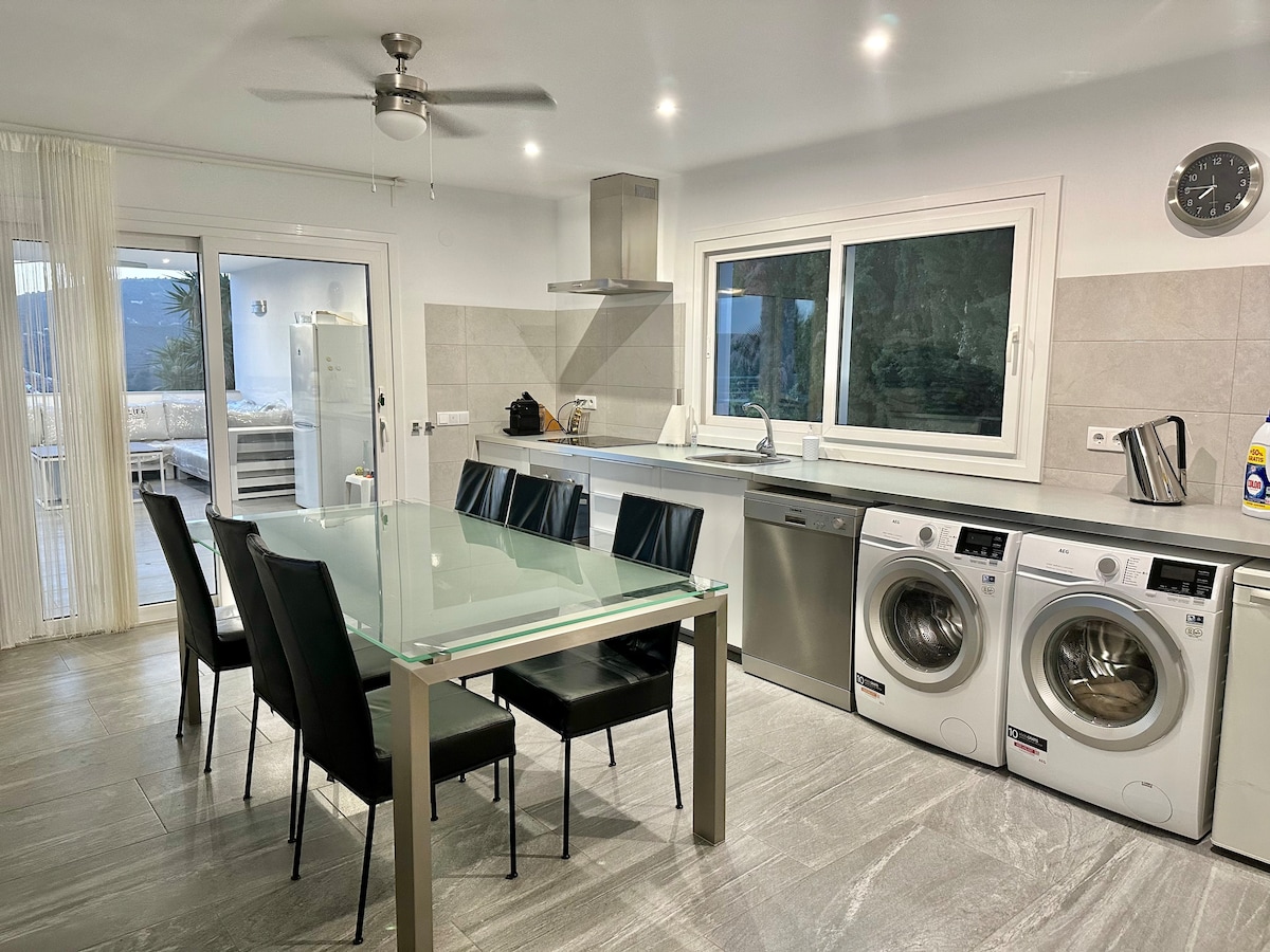 Stunning minimalist luxury villa of 600 m² on three floors. Features a multipurpose room with pool views, projector, satellite TV, video games, disco and gym. Private swimming pool (9 x 5 m) with whirlpool and multicolored lighting, covered from November to April. Pool heating available upon request for an additional fee. Pool and terrace have new anti-slip tiles for added safety. Barbecue, garden, games room, 15 bikes, air conditioning, home automation and electric car charger.