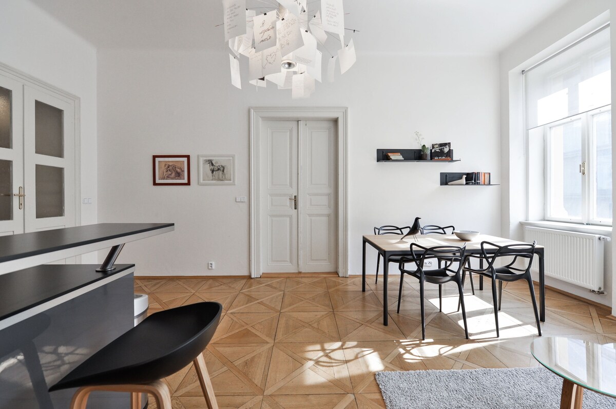 Wyrafinowany apartament, parking, w sercu Pragi