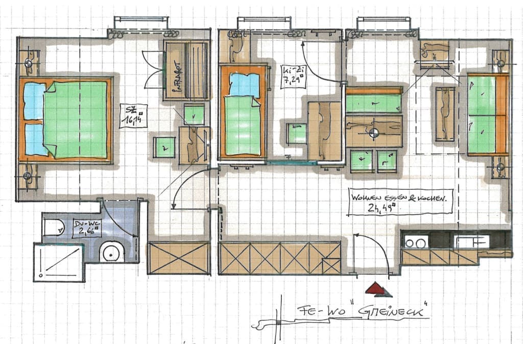 Spędź wakacje jak za dawnych dobrych czasów. Przypomnij sobie swoje dzieciństwo. Była sobie kiedyś wioska. Dziś to miasto. Wtedy grałeś z przyjaciółmi, którzy mieszkali obok. Nie znasz nikogo, kto mieszka na Twojej ulicy. Tutaj, na naszej farmie, świat jest w pokoju ze sobą. Jak za starych dobrych czasów! Poznaj życie na wsi. Zobacz, jak ożywają wspomnienia. Nasz apartament wakacyjny „Gmeineck” składa się z czterech pokoi. Jest wyposażony w przestronną kuchnię i jadalnię.
