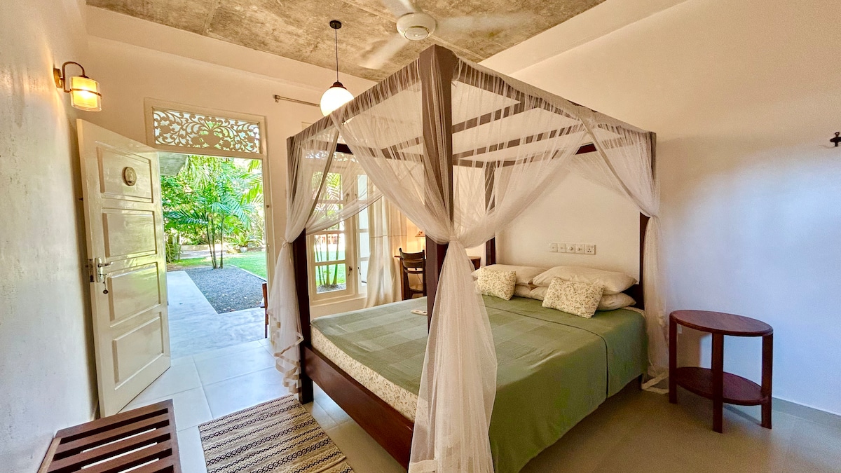 Witaj w naszym nowym domu. Oferujemy prywatną, spokojną przestrzeń, w której można wziąć głęboki oddech i połączyć się z naturą, z dala od wszelkich kłopotów, idealne miejsce do odłączenia się Nasz nowo wybudowany bungalow znajduje się 10 minut spacerem od oszałamiającej plaży Goyambokka, 5 minut jazdy bytuk-tukiem do cichej plaży lub do miasta Tangalle. Bardzo wygodne, duże łóżko typu king size jest wystarczająco duże dla dwóch osób. Możemy przygotować Ci posiłek. Możesz korzystać z własnej kuchni. Chętnie spotkamy się z Tobą na Sri Lance!