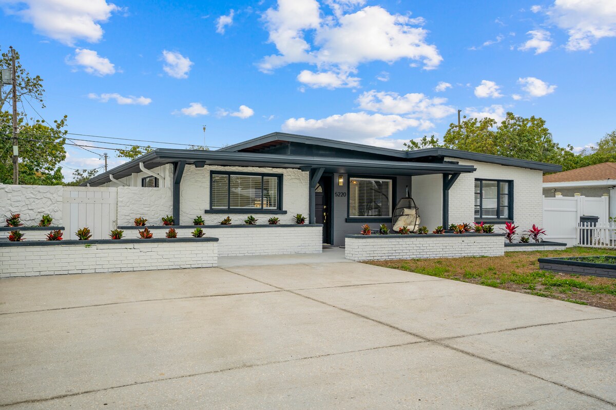 Ta nowo wybudowana powozownia została zbudowana, aby uchwycić charakter i urok głównego domu, rzemieślniczego bungalowu z 1928 roku. Apartament z 1 sypialnią na drugim piętrze jest dobrze wyposażony w pełną kuchnię szefa kuchni, salon z rozkładaną sofą oraz pralkę/suszarkę. Wypij poranną filiżankę kawy lub kieliszek wina wieczorem na dużym ganku. 2 minuty spacerem do restauracji Grand Central, kawiarni, butików lub weź rower lub skuter na 5 minut jazdy do centrum St. Pete lub 15 do plaż.