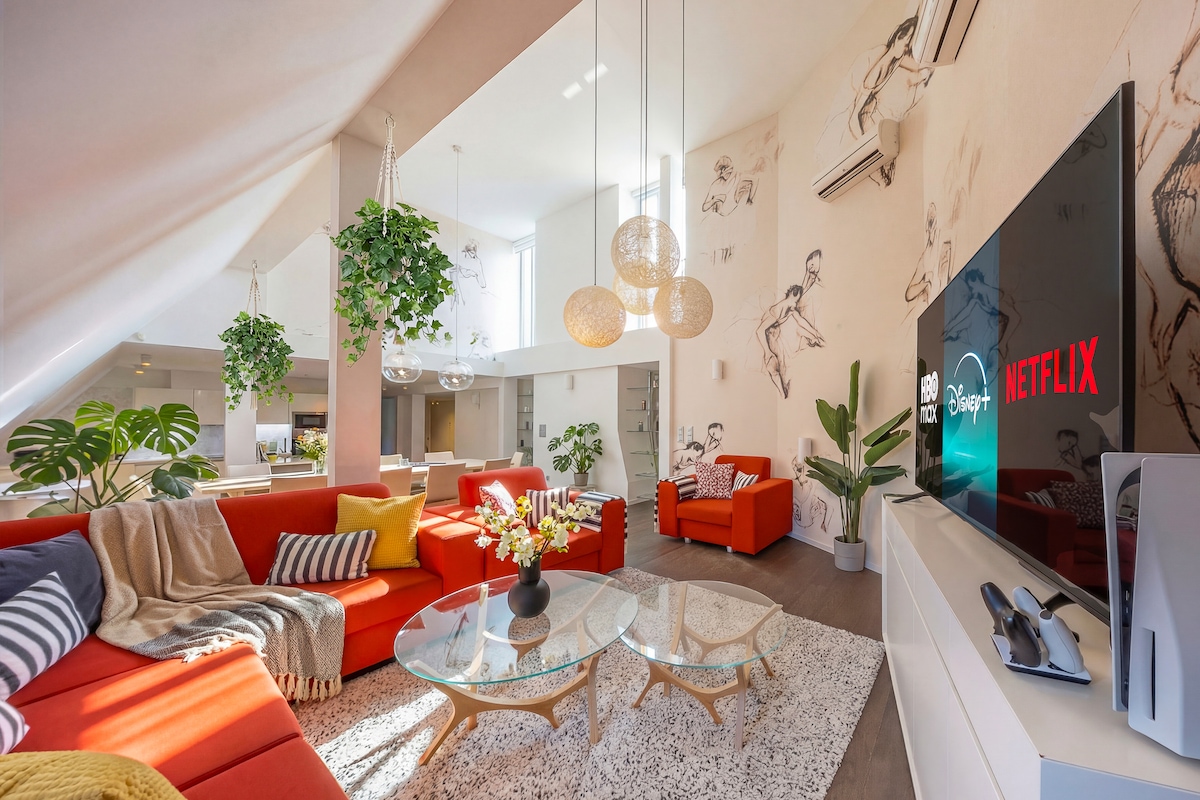 Ciesz się stylowym doświadczeniem podczas wakacji w tym centralnie położonym lofcie na dachu. Nasze Airbnb jest idealne dla każdego, kto szuka wygodnego domu. W naszym apartamencie znajdziesz wszystkie niezbędne udogodnienia, takie jak klimatyzacja, WI-FI, smart TV, pralka z suszarką i inne. Może wygodnie pomieścić do 3 dorosłych gości. Lokalizacja naszego żółtego apartamentu ogrodowego jest również idealna, nad brzegiem rzeki Wełtawy! Codzienny spacer do centrum Pragi, który znajduje się w odległości spaceru.