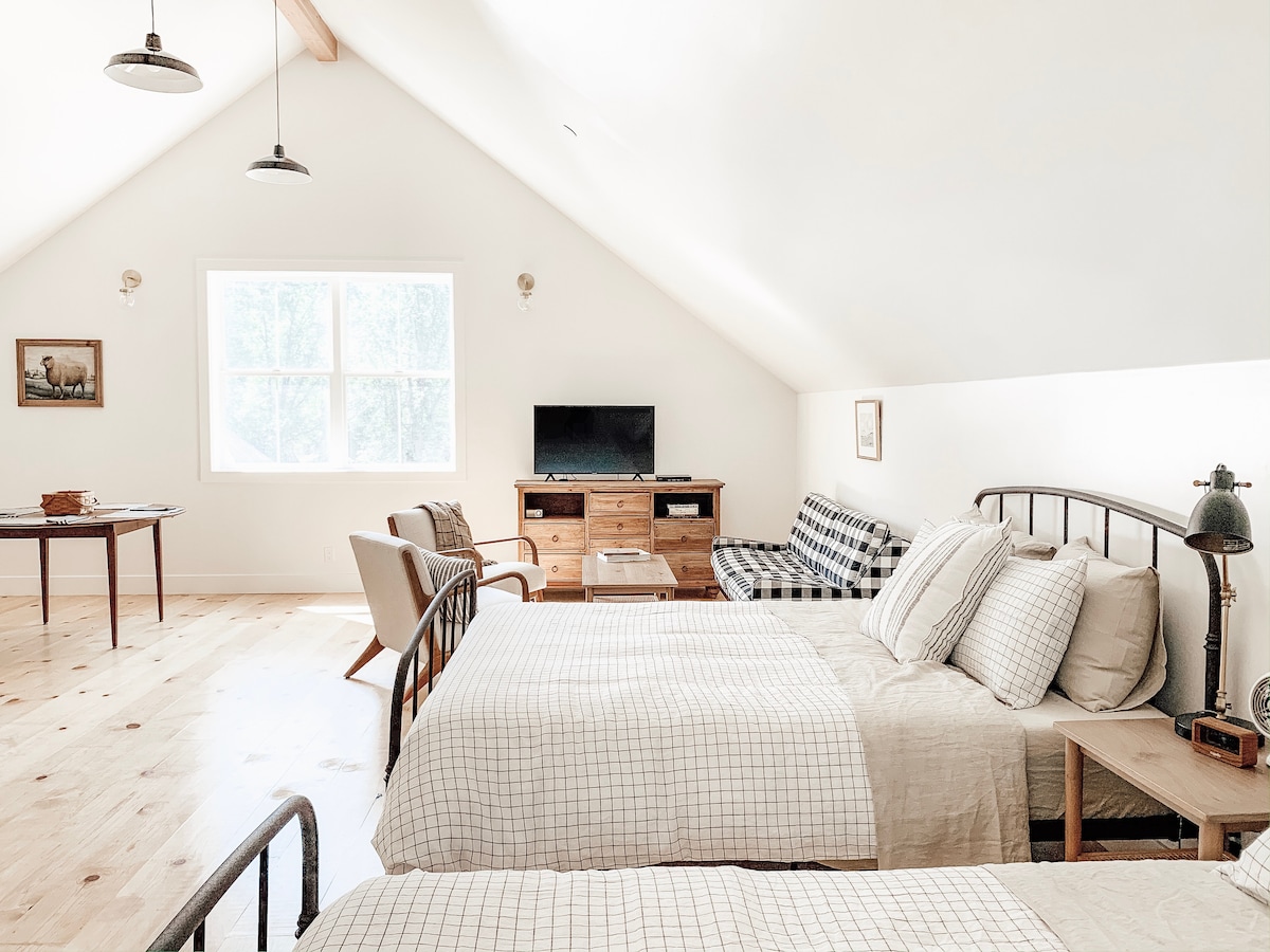 Nowo wybudowana wolnostojąca stodoła z przytulnym apartamentem na poddaszu na naszym 6-akrowym gospodarstwie. Oferujemy 2 ładowarki do samochodów elektrycznych Tesla, szybkie Wi-Fi Comcast (pobieranie 89,6 Mb/s, przesyłanie 35,9 Mb/s), zupełnie nowe materace i przytulne miejsce na relaks. Zaledwie kilka minut jazdy samochodem od wejścia do Parku Narodowego Yosemite (nieco ponad godzinę - 56 mil), jeziora Pinecrest, historycznego centrum Sonory i Kolumbii, ośrodka narciarskiego Dodge Ridge, kasyna Black Oak i niezliczonych szlaków turystycznych w Lesie Narodowym Stanislaus!