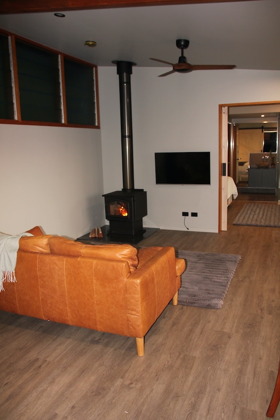 Zrób sobie przerwę i zrelaksuj się w tej oazie spokoju. May's to jedno z dwóch w pełni niezależnych mieszkań w tym budynku. Każdy apartament ma własne wejście i można cieszyć się ekskluzywną zewnętrzną kamienną kąpielą, zrelaksować się przed kominkiem wewnętrznym, przytulić się do łóżka typu king-size lub wyjść w hamaku. Ta piękna nieruchomość w buszu ma dostęp do Moreton Bay, znajduje się 10 minut jazdy od plaż Straddie i 15 minut od Brown Lake. Poczujesz się jak w innym świecie.