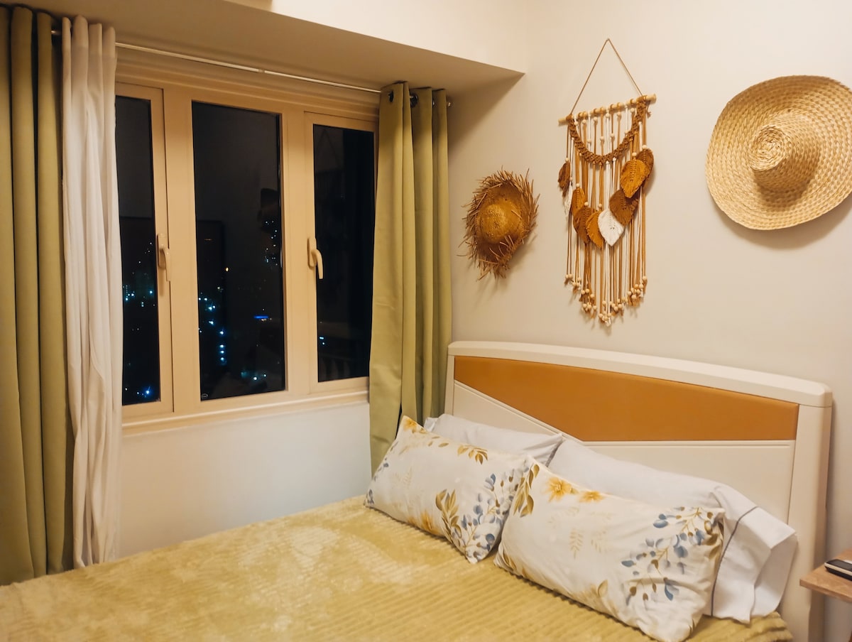 Witaj w naszym wyjątkowym kondominium Airbnb, z zapierającymi dech w piersiach widokami na zatokę Manila! Ten starannie zaprojektowany apartament z jedną sypialnią to najlepszy wybór na pobyt w tętniącym życiem mieście, oferując zarówno wygodę, jak i wygodę. Wejdź do środka i przywitaj się stylowo urządzoną przestrzenią mieszkalną, która łączy nowoczesną estetykę z przytulną atmosferą. W pokoju znajdują się dwa łóżka, które można bez wysiłku przekształcić w łóżko typu king-size, zapewniając spokojny sen dla Ciebie i Twojego towarzysza podróży.
