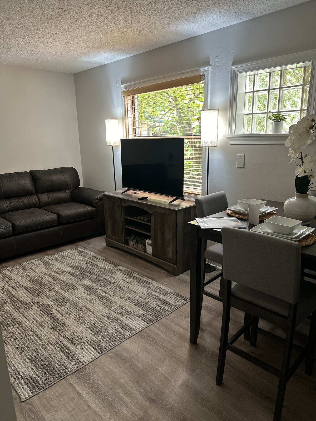Zatrzymaj się w naszym małym gospodarstwie! Świetna lokalizacja w obrębie ATL. Prywatne wejście bez klucza Wydzielone miejsce parkingowe Wypełniona światłem otwarta przestrzeń W pełni funkcjonalna kuchnia Pełna łazienka Prywatne patio, ogrodzone 8-stopowym płotem Proste śniadanie wliczone w cenę Szybki internet światłowodowy z Wi-Fi 6 prędkości Ładowanie poziomu 2 z wtyczką NEMA 14-50/50 A Oddzielna przestrzeń do pracy Telewizor z usługami streamingowymi