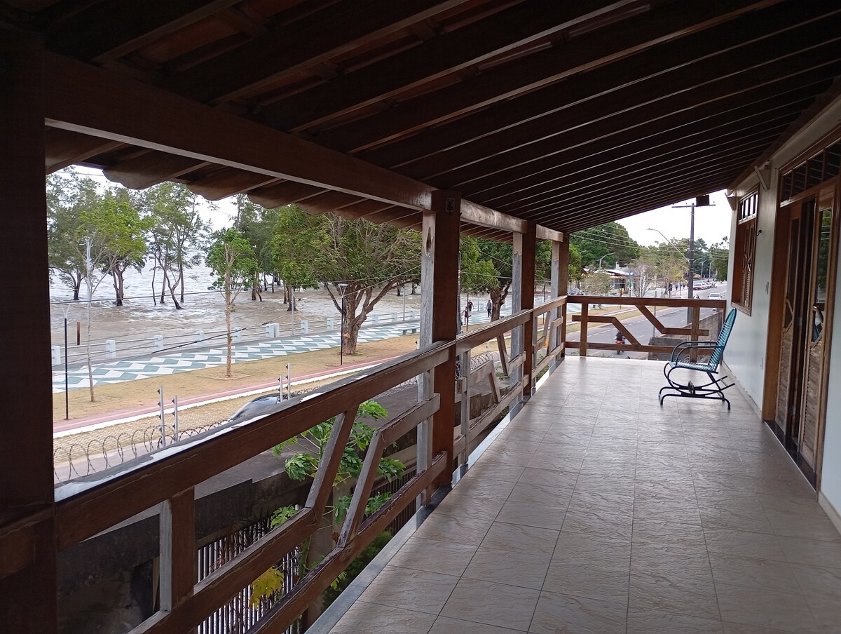 Casa avarandada e arejada na orla do Rio Amazonas.