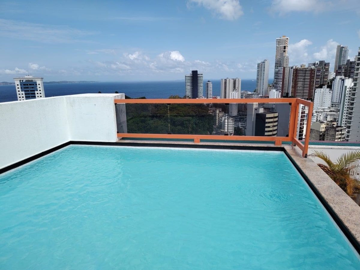 Przechodzisz przez ulicę i jesteś na piasku plaży, w morzu! Co powiesz na relaks w basenie na tarasie z panoramicznym widokiem na morze Ondina? Aconchegante flat studio type at front of the beautiful beach with natural pools, safe, 24-hour reception, daily maid service, swimming pool on the terrace, elevator, garage and shops in the building. Ondina to jedna z najlepszych dzielnic na pobyt w Salvadorze jako udogodnienia i piękne odnowione nabrzeże. Precioso Place!