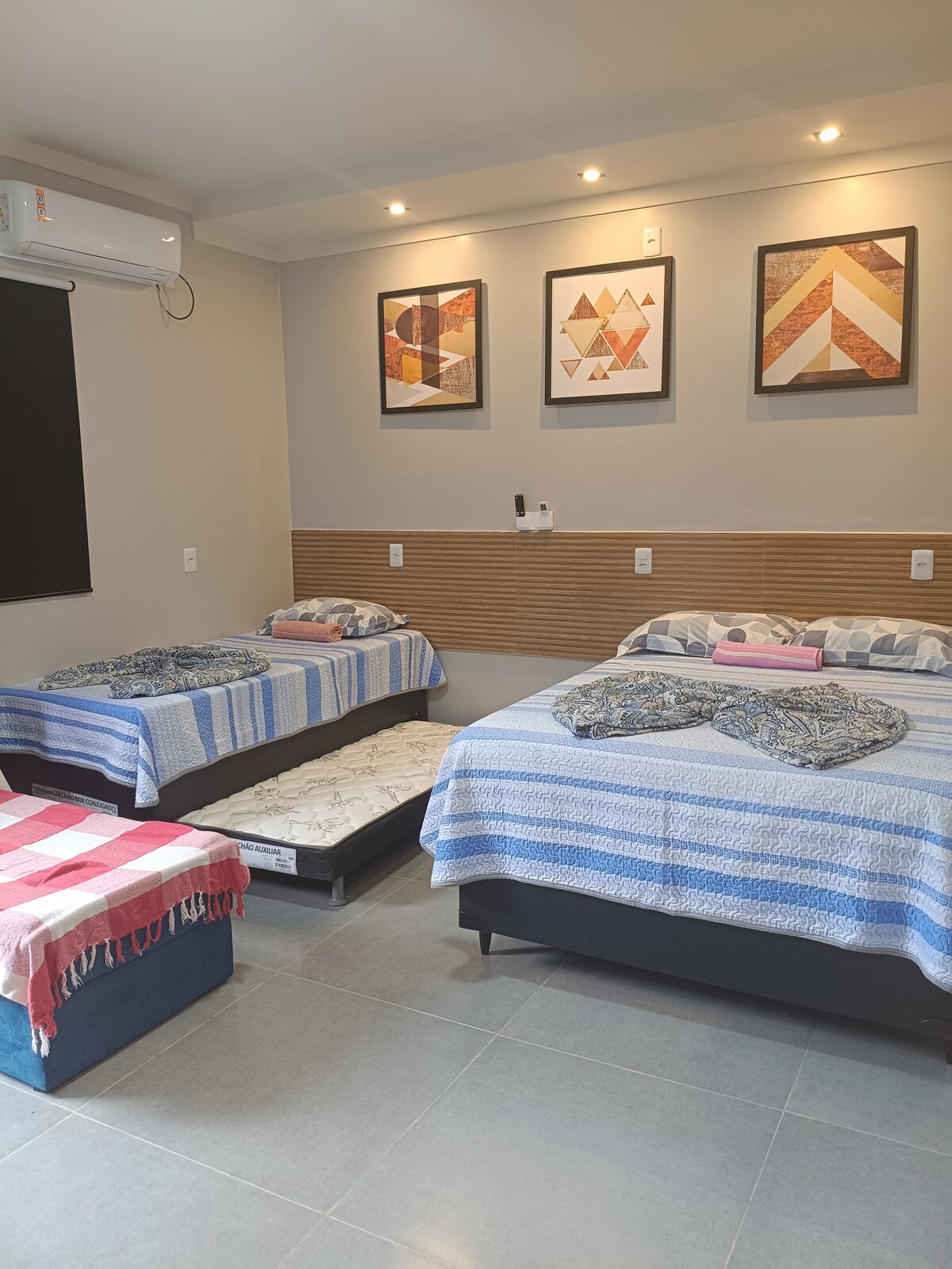 O espaço acomoda até 3 pessoas. contém 1 cama Queen, com opção de 1 colchão entra. Casa Aconchego- Hospedagem Aqui na Casa Aconchego, você encontra o equilíbrio perfeito entre conforto e tranquilidade. Nossa casa foi pensada para proporcionar uma experiência acolhedora, com quartos privativos e ambientes compartilhados que convidam ao relaxamento.