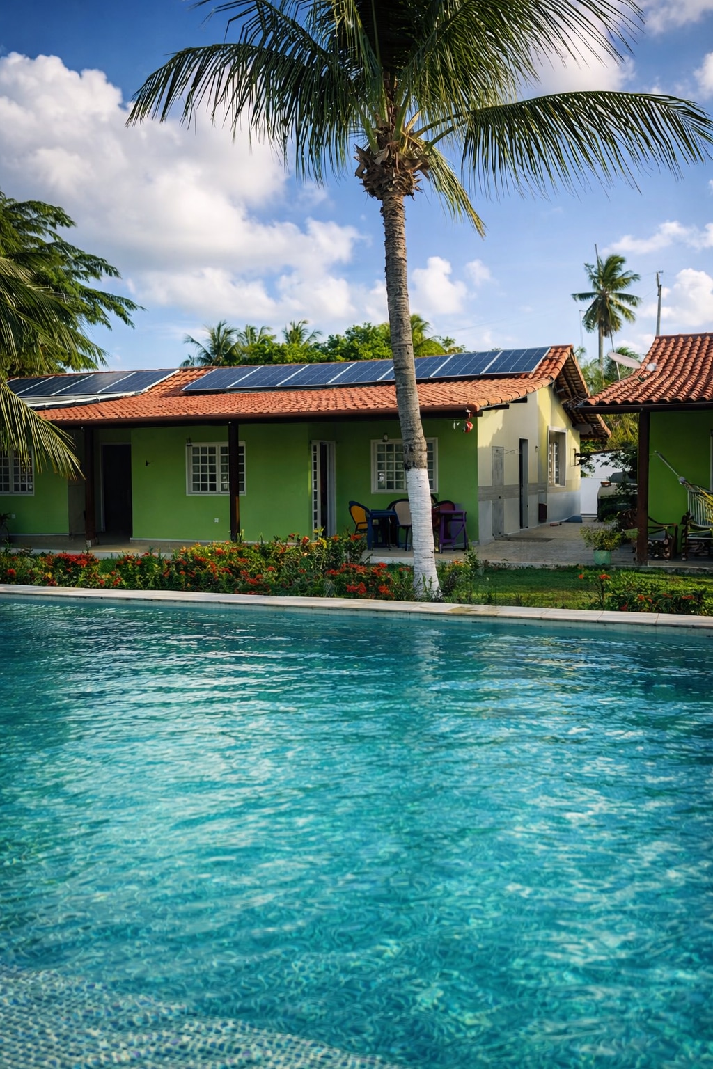 This cozy beach style home is just 150m (3 minute walk) to Tabatinga II beach, just south Jacuma, near Joao Pessoa, PB. Renovated in 2024, there are 4 suites for 13 guests. There is a front porch area for outdoor dining, socializing, or just relaxing in a hammock. There is a front yard pool and a BBQ hut with freezer, sink, table, and BBQ. The living room has a projector and a 5.1 surround sound system making it also a home theater through the disc player. The driveway will fit 4 cars.