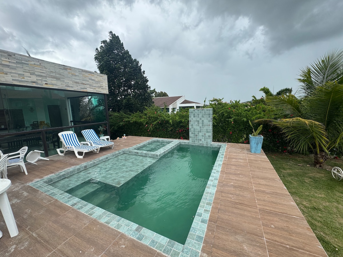 Casa Nova, z 2 sypialniami, 3 podwójnymi łóżkami, basenem, antresolą, 2 łazienkami, w pobliżu Bezerros. Sala gier, korty tenisowe, siatkówka, piłka nożna.